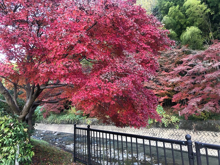 In truth, the scene was beautiful, though not quite as the poems describe it, with red leaves flowing and covering the surface of the river. For me, this was an important realization: many poetic scenes are imagined and refined over time, handed down through generations as shared visions of beauty.
